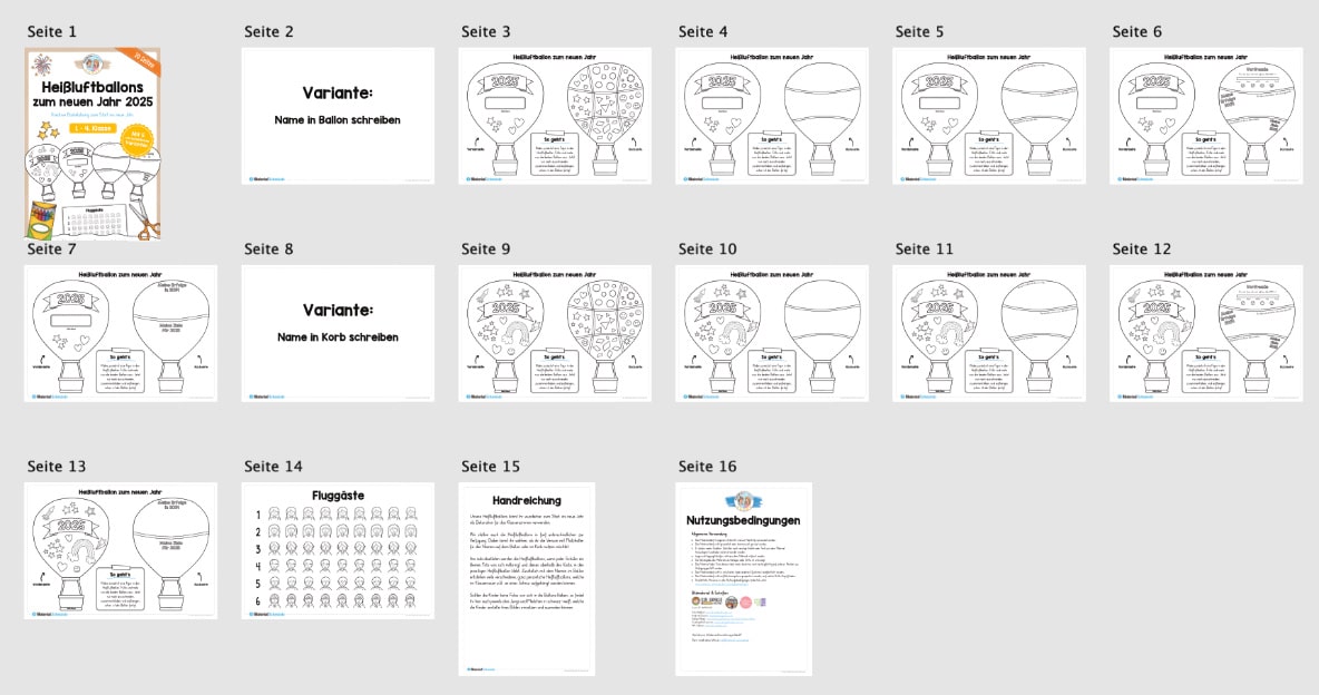 Wir stellen euch die Heißluftballons in fünf unterschiedlichen Varianten zur Verfügung, welche aus Vorder- und Rückseite bestehen. Die Vorderseiten sind jeweils identisch, die Rückseiten variieren wie folgt: