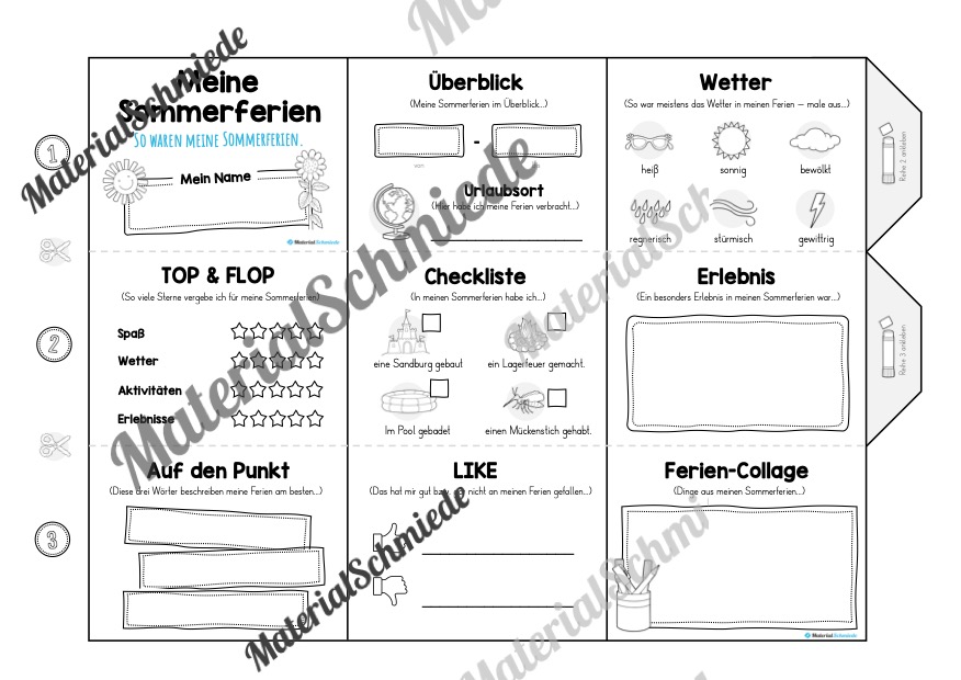 Die Schüller sollen auf 9 kleinen Seiten von ihren Sommerferien berichten.
