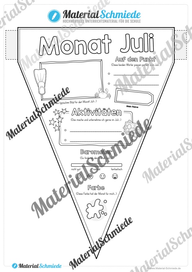 Hier findet ihr einen Wimpel zum Monat Juli.