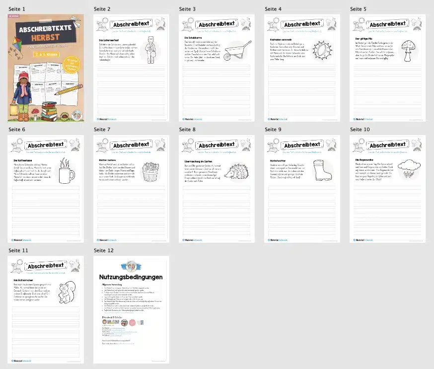 Die Themen der Abschreibtexte zum Herbst lauten wie folgt: