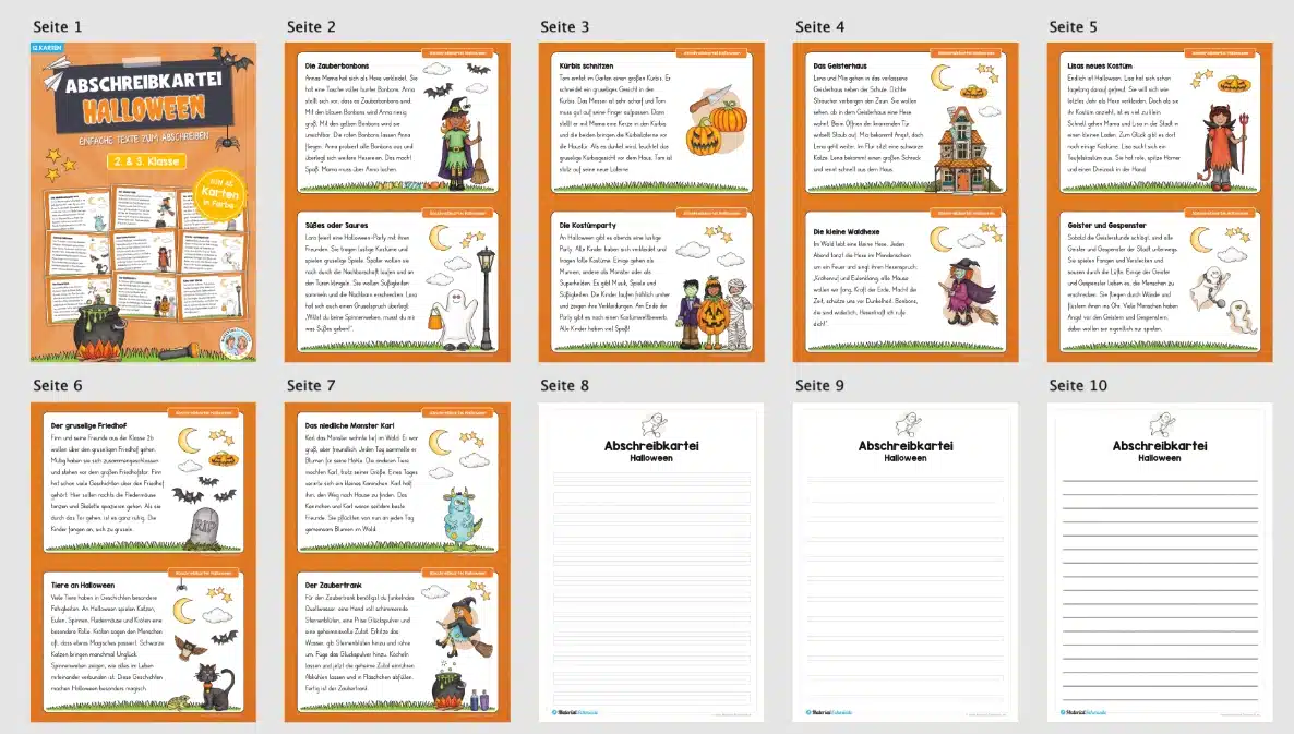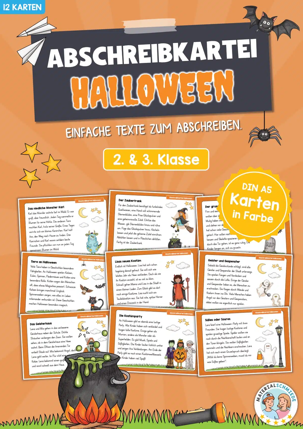 Hier findet ihr 12 Abschreibkarten zum Thema Halloween für die 2. und 3. Klasse.