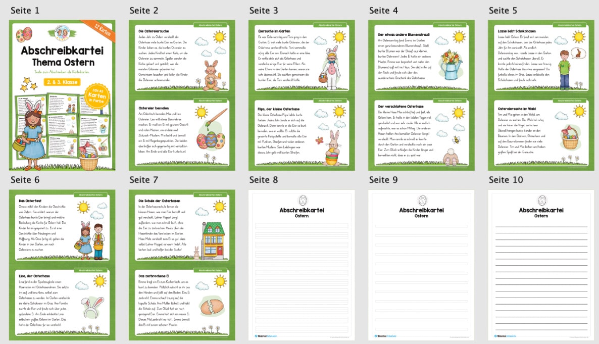 Hier findet ihr 12 Abschreibkarten zum Thema Ostern für die 2. und 3. Klasse.