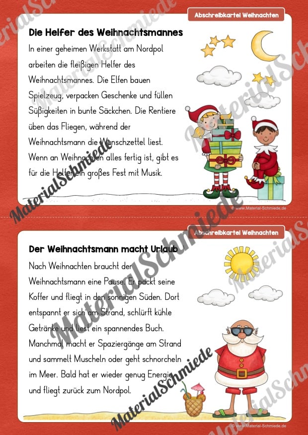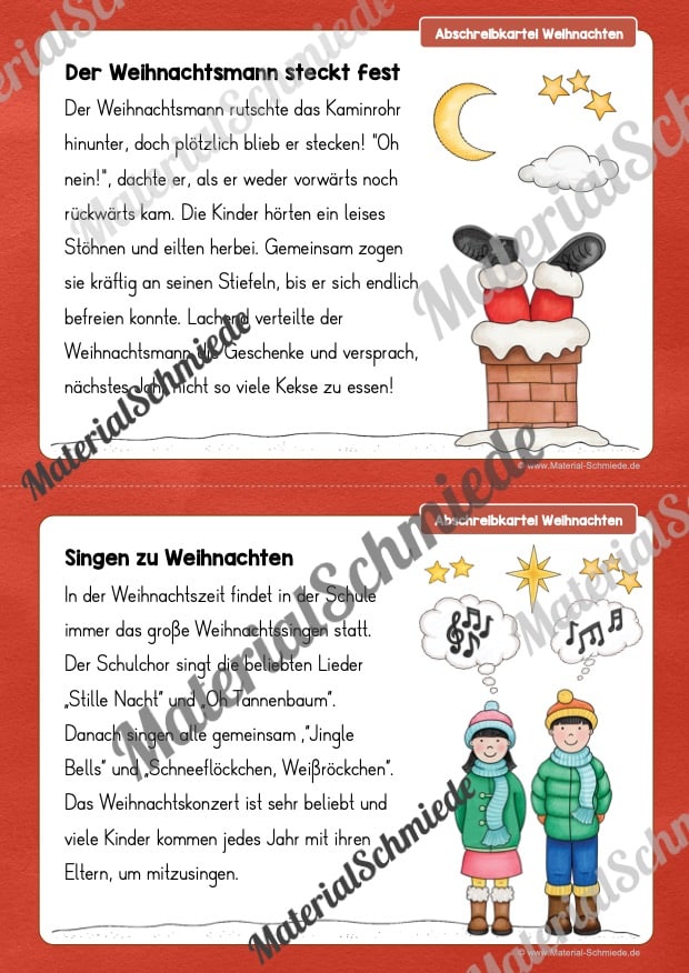 Hier findet ihr 12 Abschreibkarten zum Thema Weihnachten für die 2. und 3. Klasse.