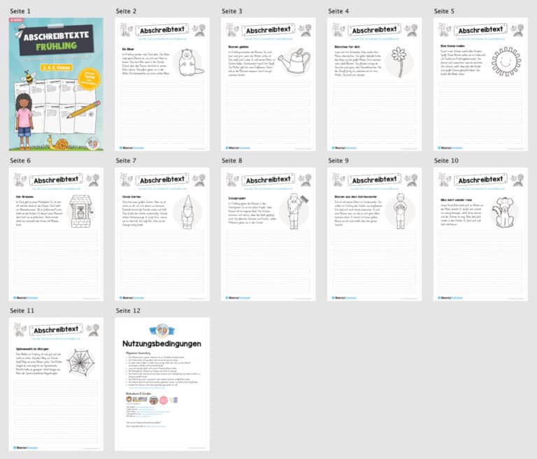 Die Themen der Abschreibtexte zum Frühling lauten wie folgt: