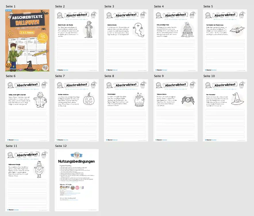 Die Themen der Abschreibtexte zu Halloween lauten wie folgt: