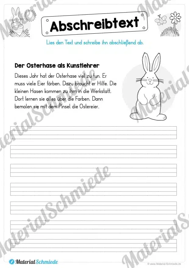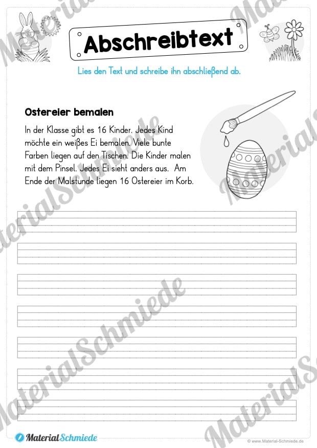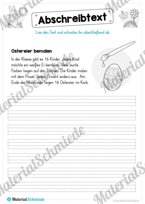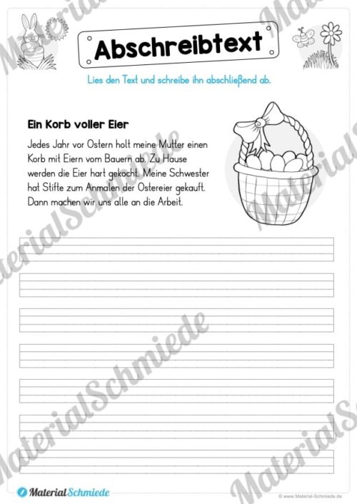 Die Themen der Abschreibtexte zu Ostern lauten wie folgt: