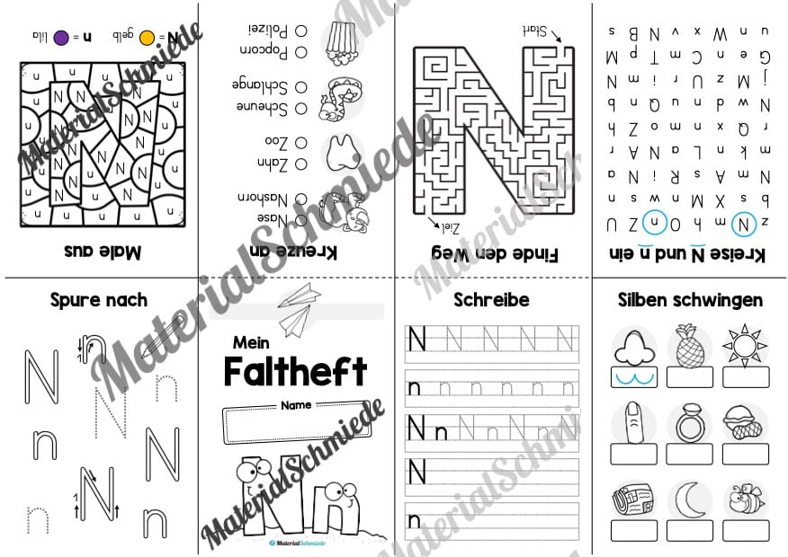 Mit Hilfe des Faltheftes sollen sich die Schüler auf spielerische Art und Weise mit dem Buchstaben N beschäftigen.