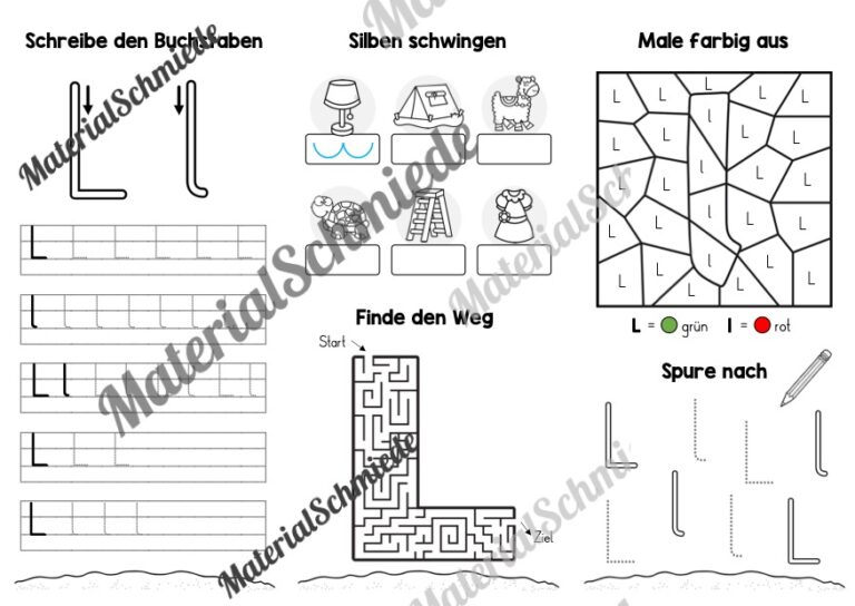 Der besseren Übersicht halber, haben wir die Aufgaben auf dem Flyer zum Buchstaben L noch einmal aufgeführt: