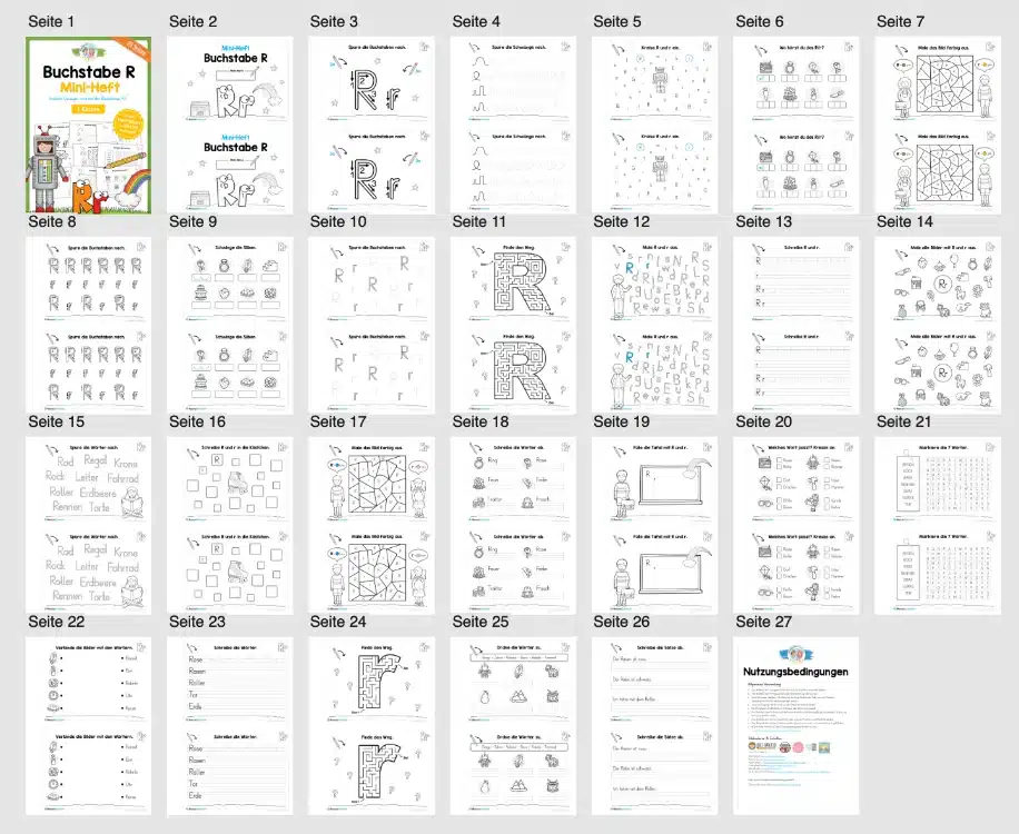 Auf insgesamt 25 Seiten sollen die Schüler sich mit dem Buchstaben R befassen.