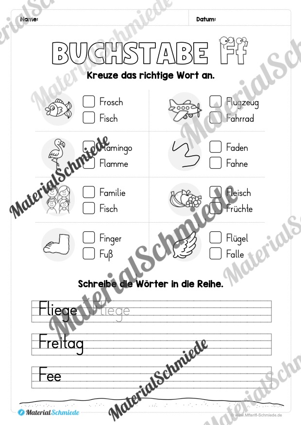 - Wörter mit dem Buchstaben F schreiben