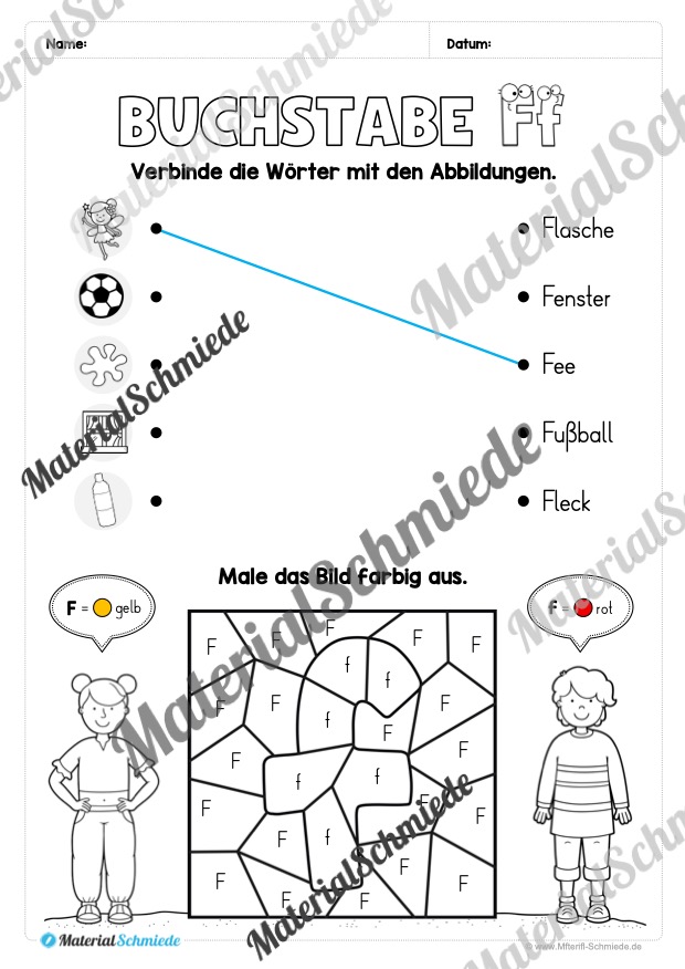 - Bilder ausmalen, die den Buchstaben F oder f enthalten