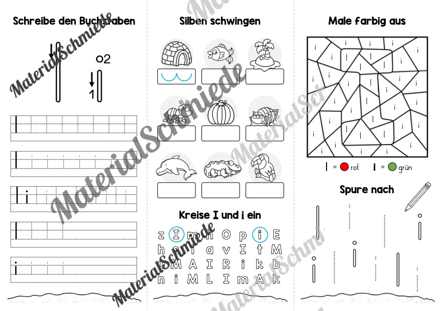 Der besseren Übersicht halber, haben wir die Aufgaben auf dem Flyer zum Buchstaben I noch einmal aufgeführt: