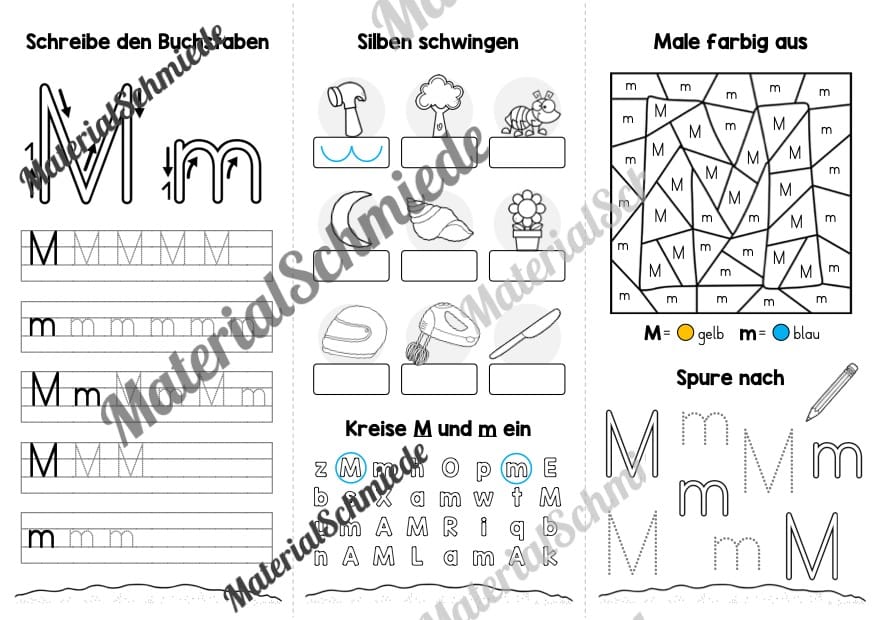 Der besseren Übersicht halber, haben wir die Aufgaben auf dem Flyer zum Buchstaben M noch einmal aufgeführt:
