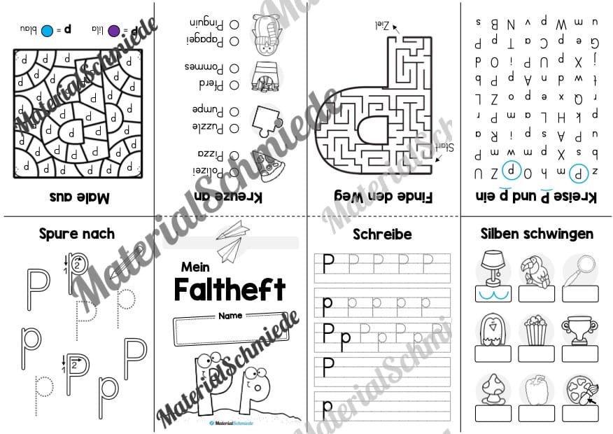 Mit Hilfe des Faltheftes sollen sich die Schüler auf spielerische Art und Weise mit dem Buchstaben P beschäftigen.