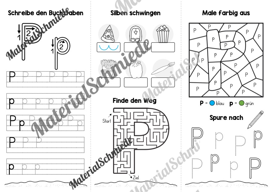 Der besseren Übersicht halber, haben wir die Aufgaben auf dem Flyer zum Buchstaben P noch einmal aufgeführt: