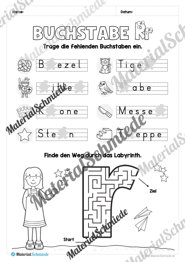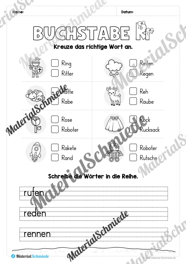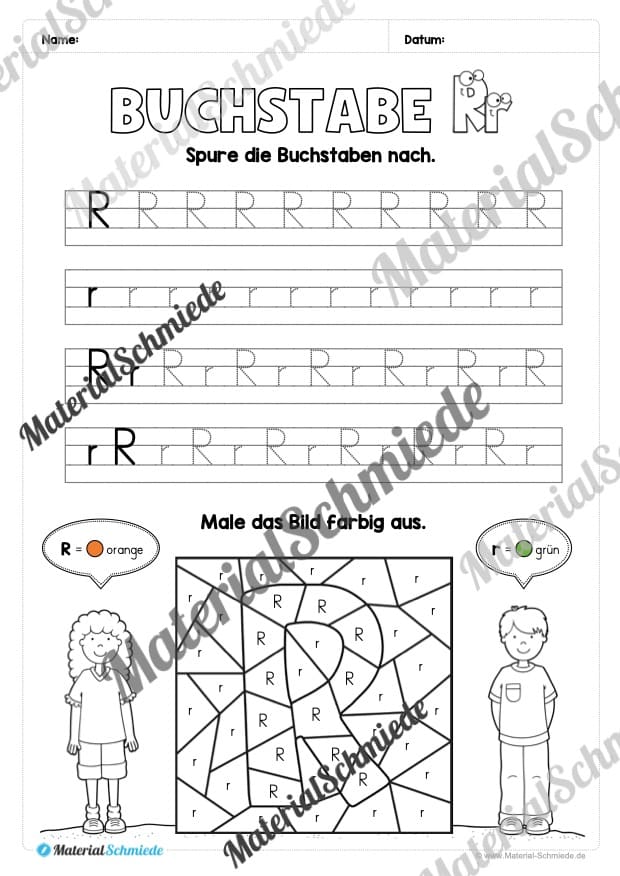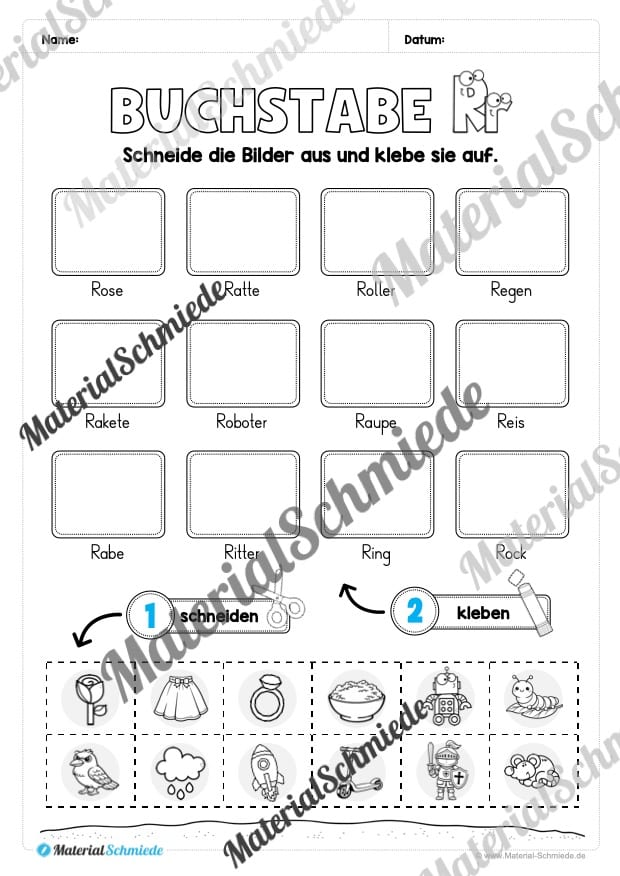 - Bilder ausmalen, die den Buchstaben R oder r enthalten