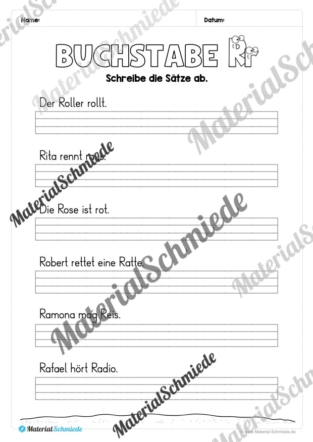 Dieses Arbeitsheft beinhaltet 25 Arbeitsblätter zum Buchstaben R / r.