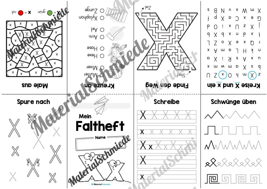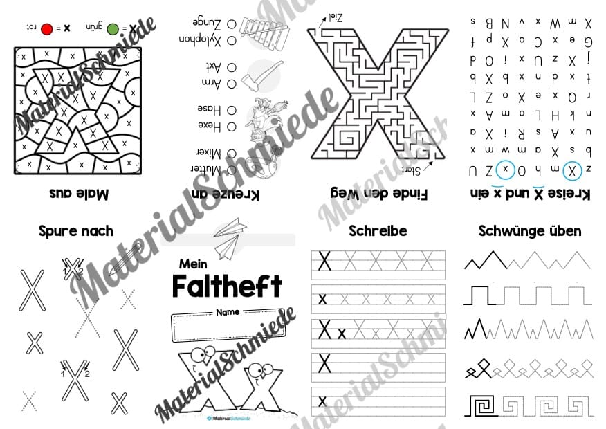 Hier findet ihr ein Faltheft zum Buchstaben X.
