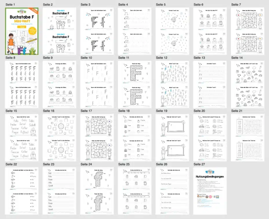 Auf insgesamt 25 Seiten sollen die Schüler sich mit dem Buchstaben F befassen.