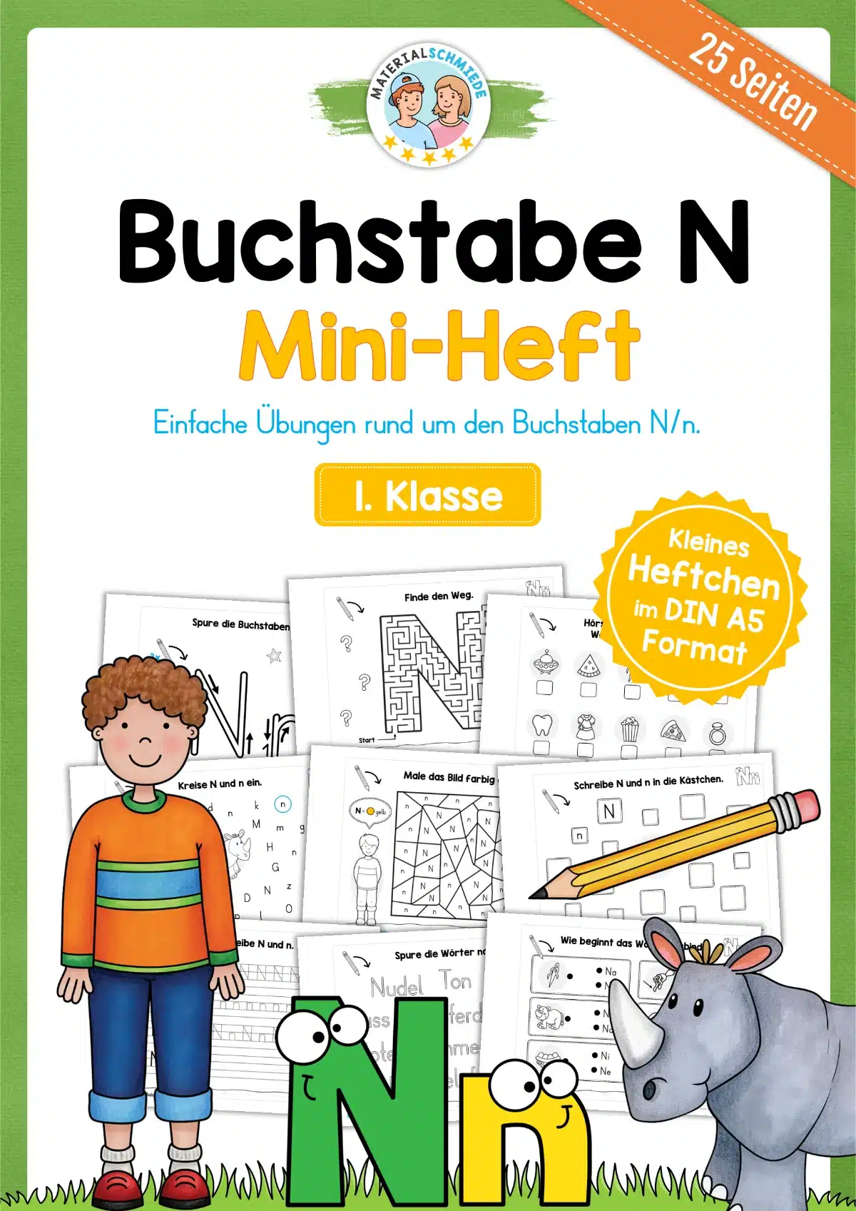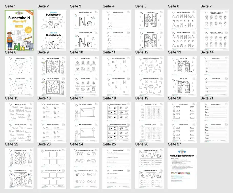 Auf insgesamt 25 Seiten sollen die Schüler sich mit dem Buchstaben N befassen.