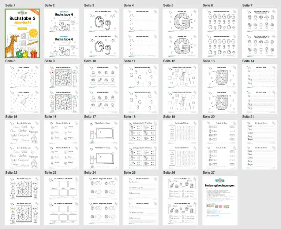 Auf insgesamt 25 Seiten sollen die Schüler sich mit dem Buchstaben G befassen.