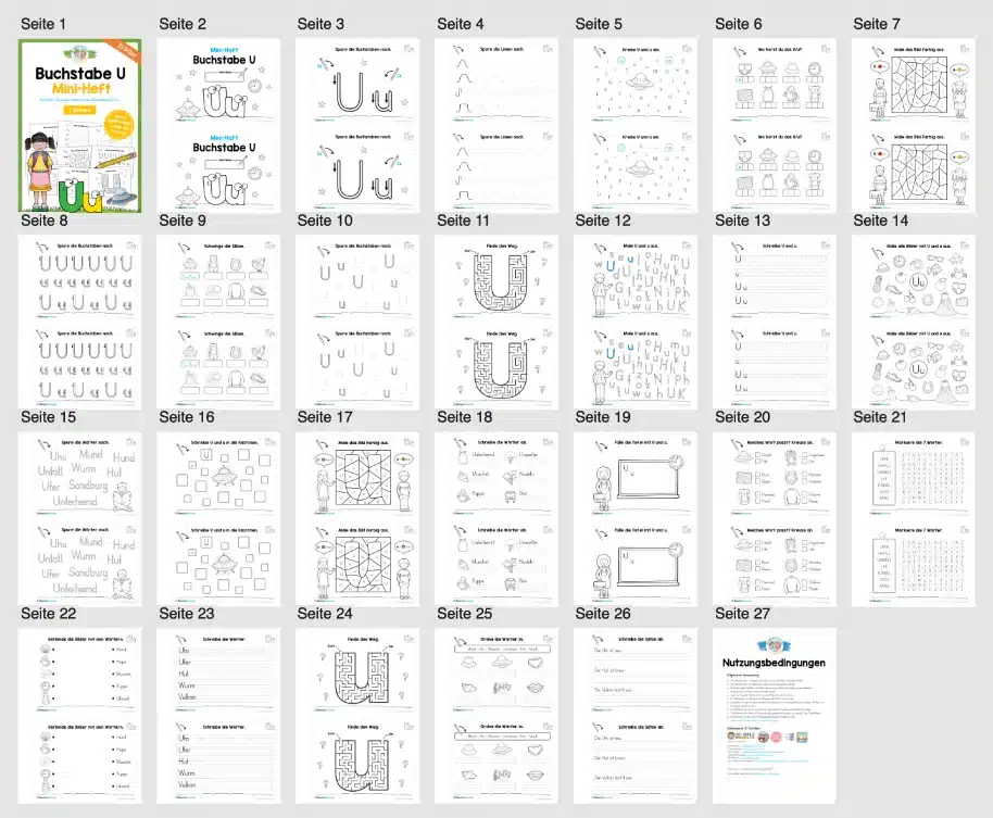 Auf insgesamt 25 Seiten sollen die Schüler sich mit dem Buchstaben U befassen.