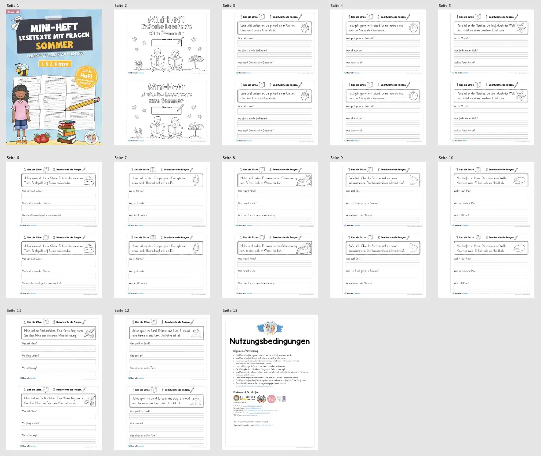 Hier findet ihr ein Mini-Heft mit Lesetexten und Fragen zum Sommer für die 1. Klasse, welches insgesamt 10 Seiten enthält.