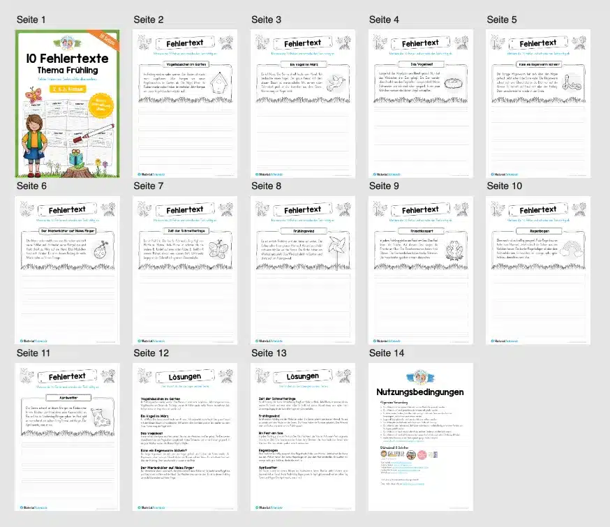 Die Themen der Fehlertexte zum Frühling lauten wie folgt: