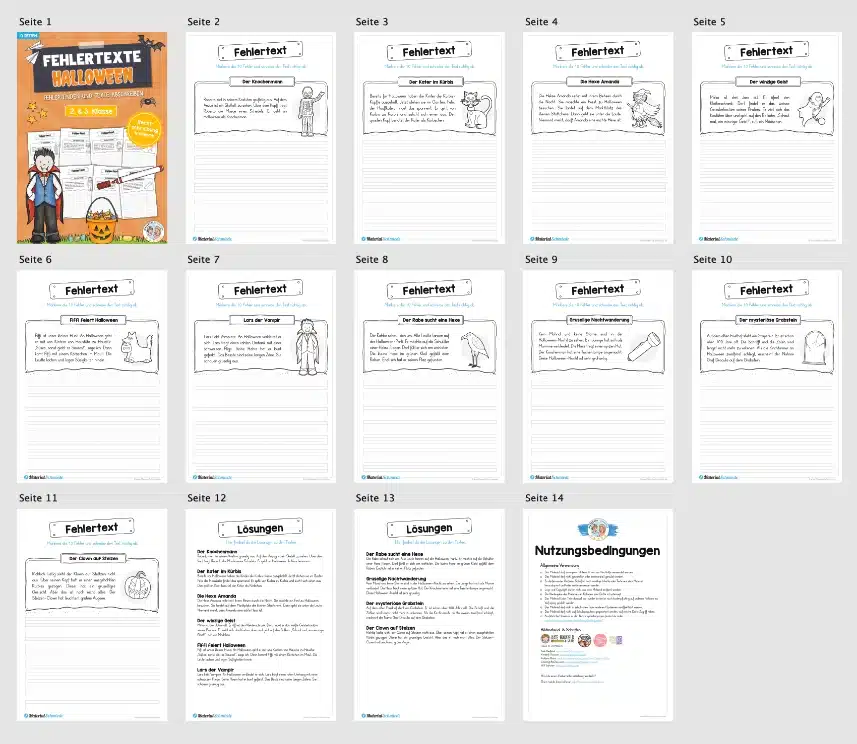 Die Lösungen bzw. die Texte ohne Fehler sind ebenfalls enthalten.