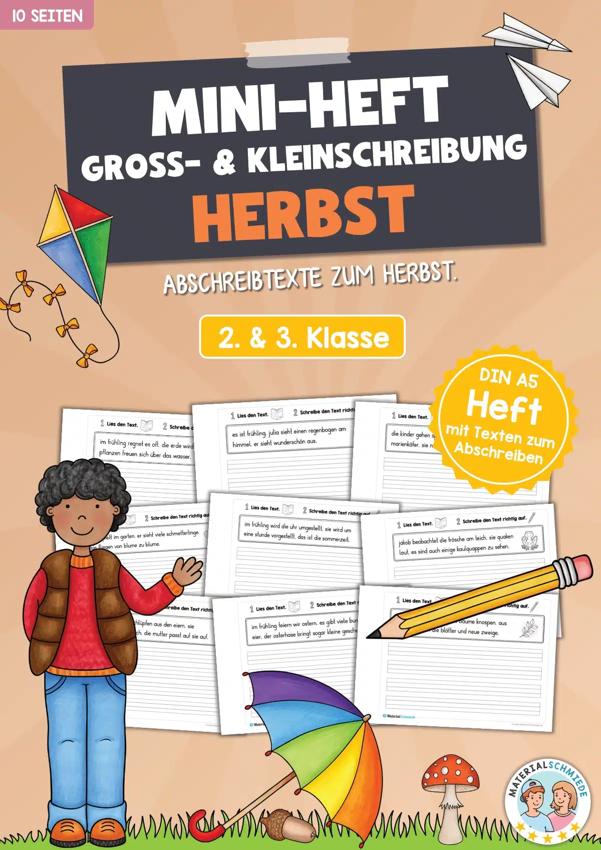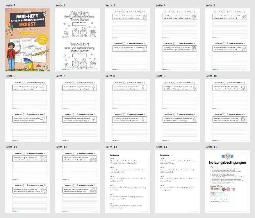 Hier findet ihr ein Mini-Heft mit 10 Abschreibtexten zur Groß- und Kleinschreibung zum Thema Herbst für die 2. Klasse im Deutschunterricht.