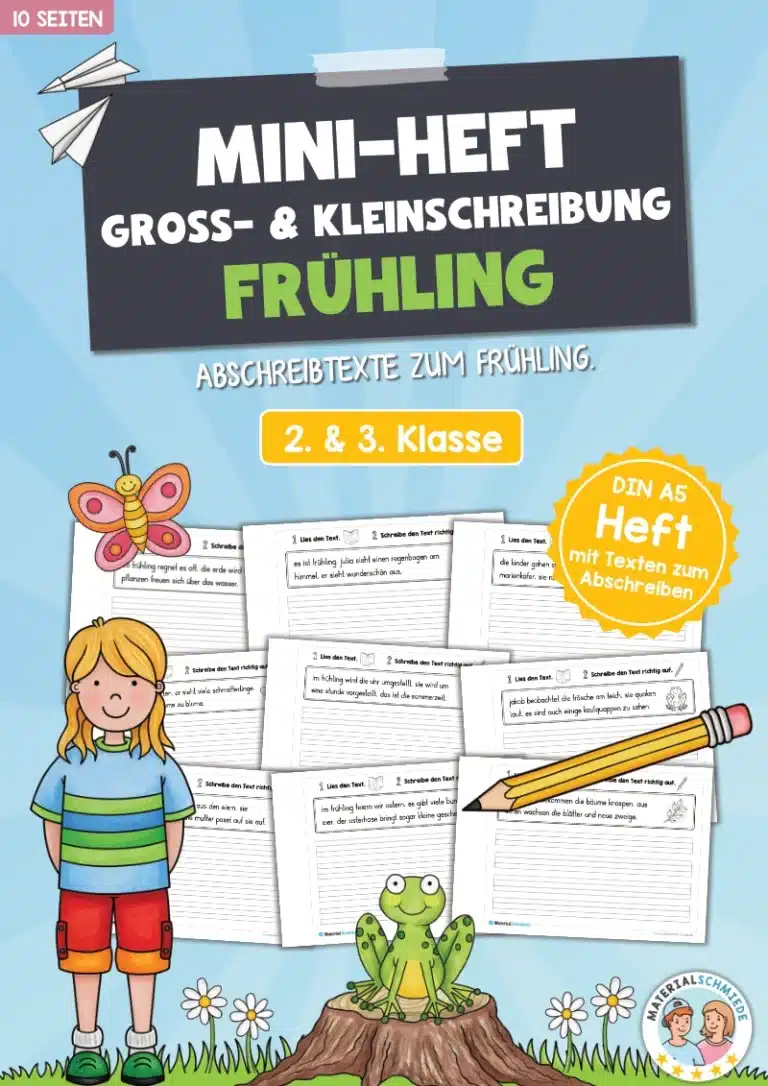 Hier findet ihr ein Mini-Heft mit 10 Abschreibtexten zur Groß- und Kleinschreibung zum Thema Frühling für die 2. & 3. Klasse im Deutschunterricht.