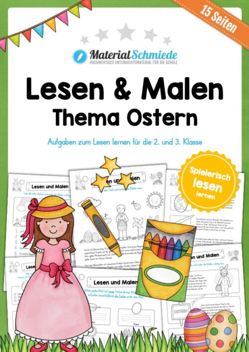 Um das Lesen mit einer spielerischen Komponente zu verknüpfen, eignet sich das Malen hervorragend. Die Schüler erhalten auf den 15 PDF-Seiten verschiedene Aufgaben und Übungen, die nur gelöst werden können, wenn das Lesen mit dem Malen kombiniert wird. Dabei dreht sich hier alles um Ostern.