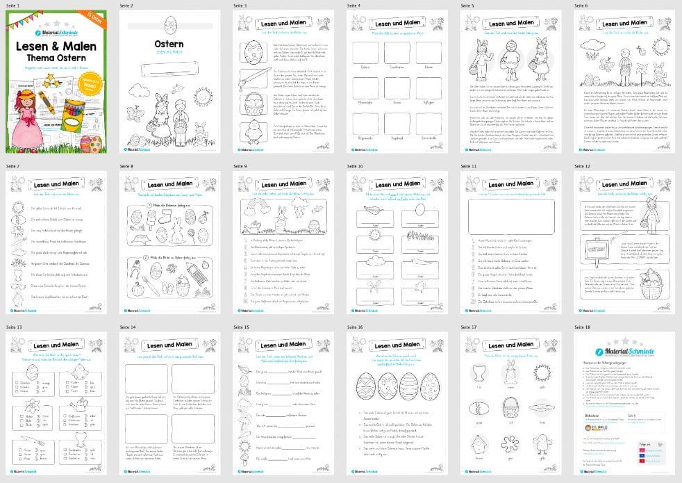 15 Arbeitsblätter zum Lesen & Malen zu Ostern