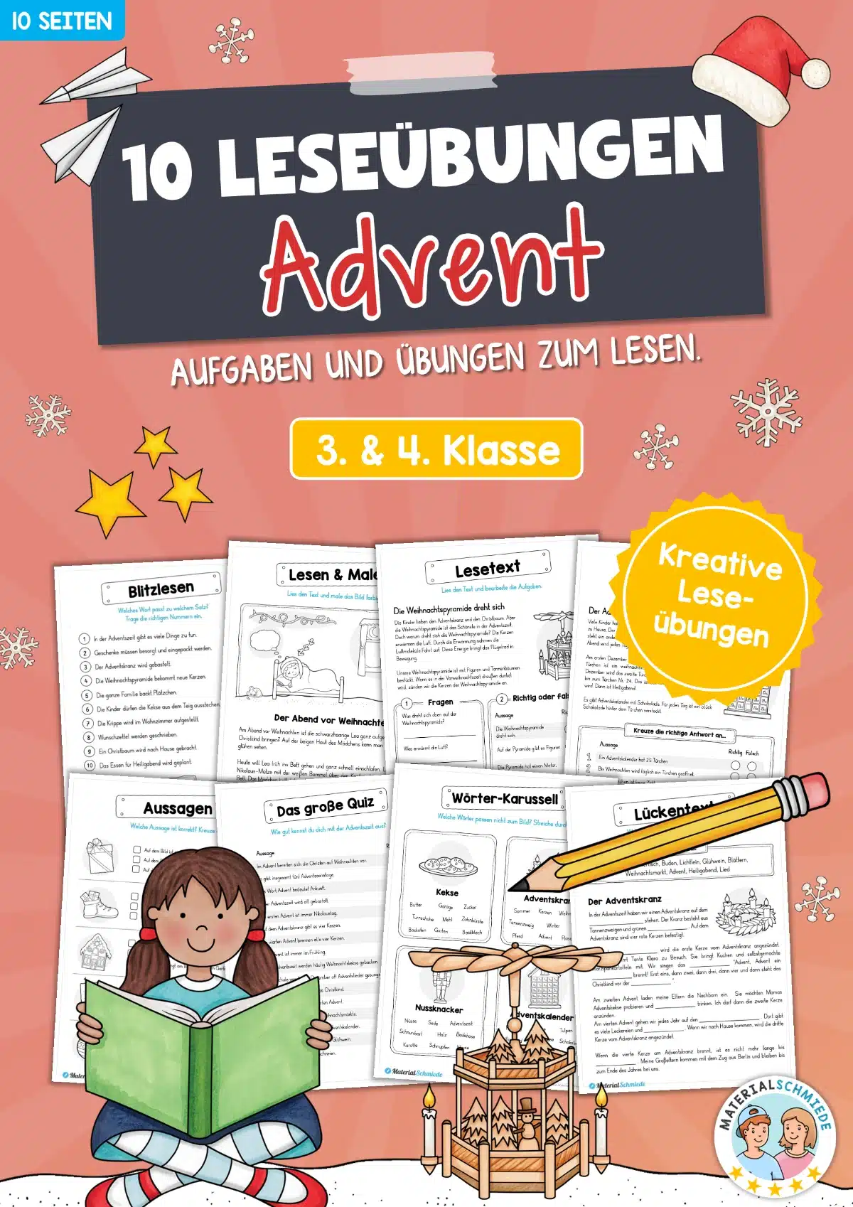 Viel Spaß mit den 10 verschiedenen Leseübungen passend zum Advent.
