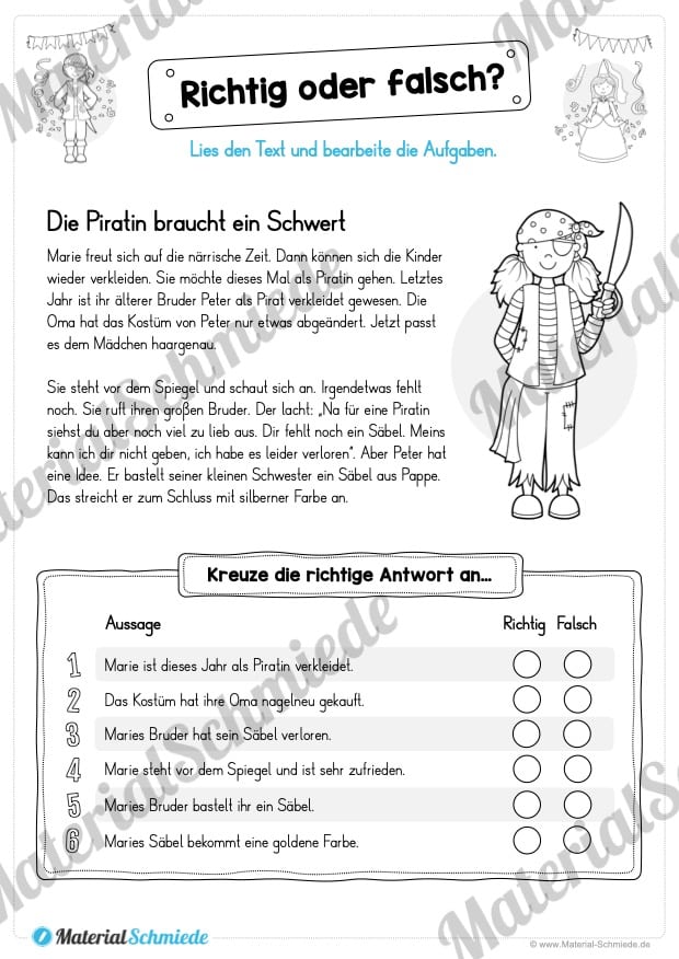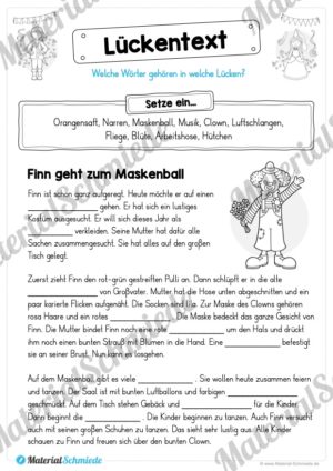 Dieses Materialpaket enthält insgesamt 10 Leseübungen zum Fasching / Karneval. Dabei liegt der Fokus auf dem „Lesen und Verstehen“ in der 3. und 4. Klasse.
