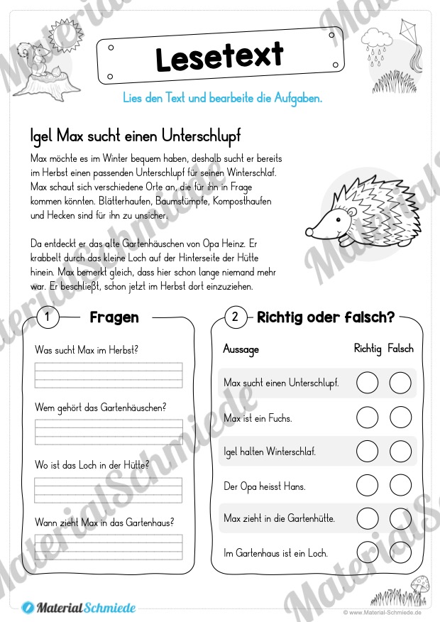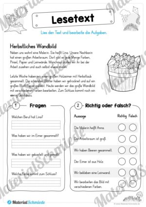 Dieses Materialpaket enthält insgesamt 10 verschiedene Lesetexte zum Herbst mit jeweils zwei Aufgaben.