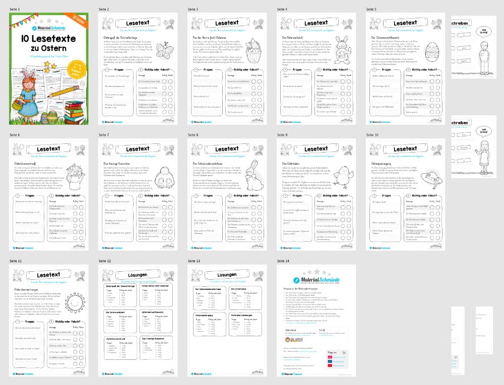 Dieses Materialpaket enthält insgesamt 10 verschiedene Lesetexte zu Ostern mit jeweils zwei Aufgaben.
