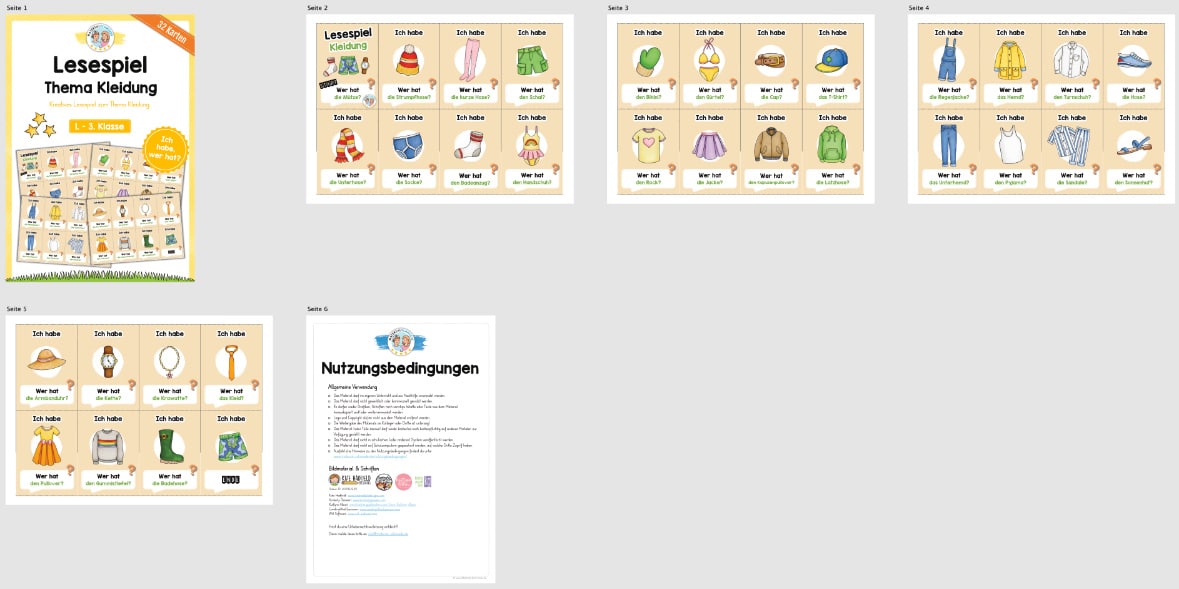 Je nach Niveau der Schüler, eignet sich das Lesespiel zur Kleidung für 1. bis 3. Klasse.