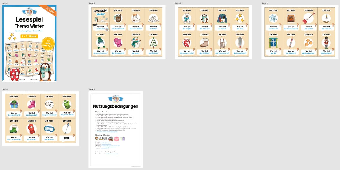 Hier findet ihr ein Lesespiel zum Thema Winter mit 32 Karten.