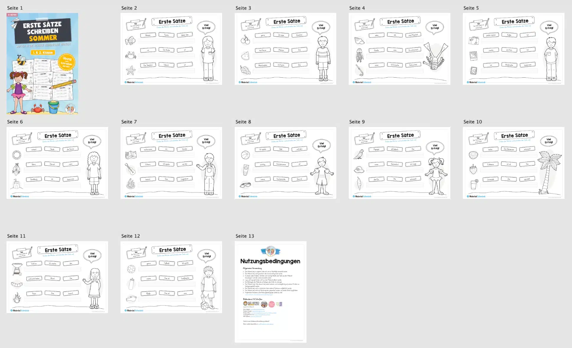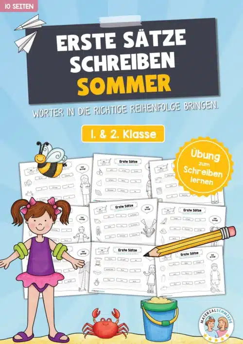 Dieses kleine Materialpaket enthält insgesamt 10 Seiten, auf denen die Schüler erste Sätze passend zum Sommer schreiben sollen.