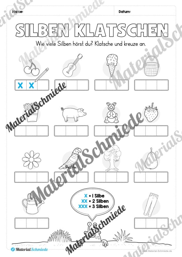 Silben zählen und ankreuzen: