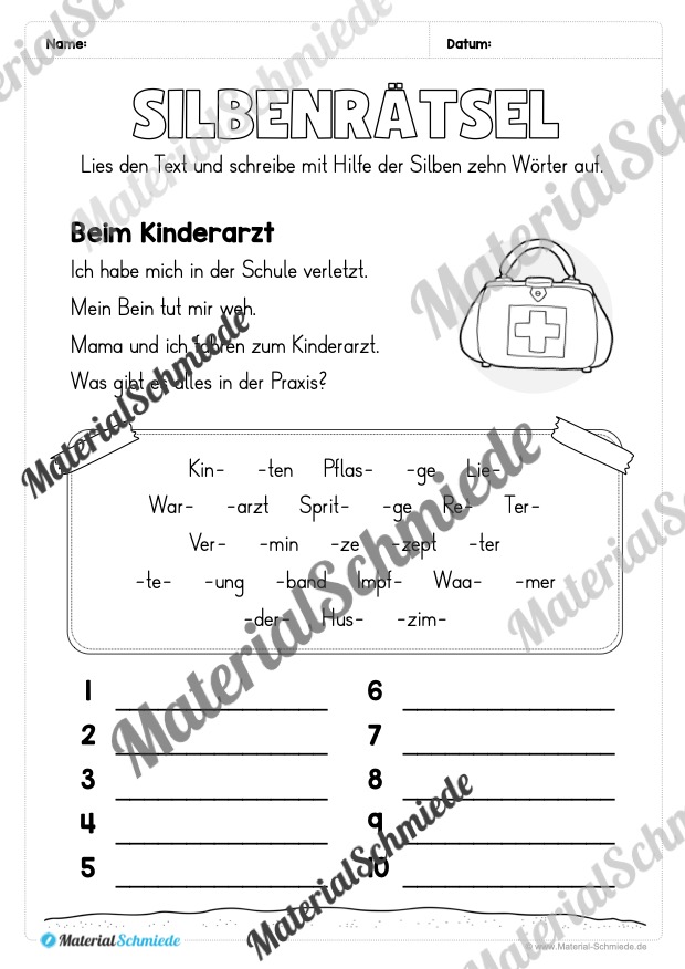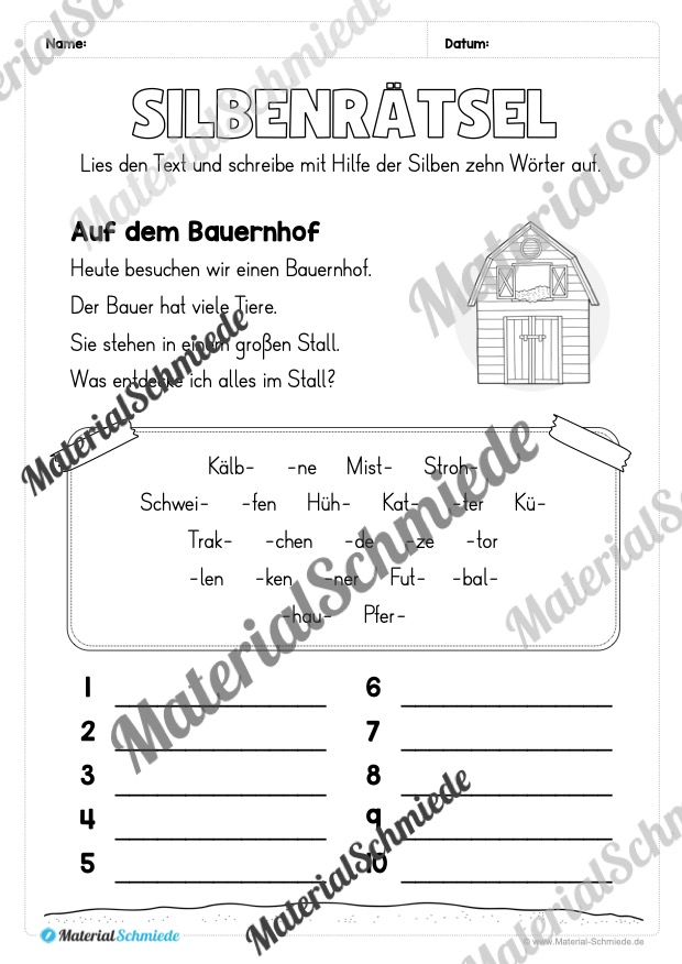 - Kurze Lesetexte mit passenden Silbenrätseln