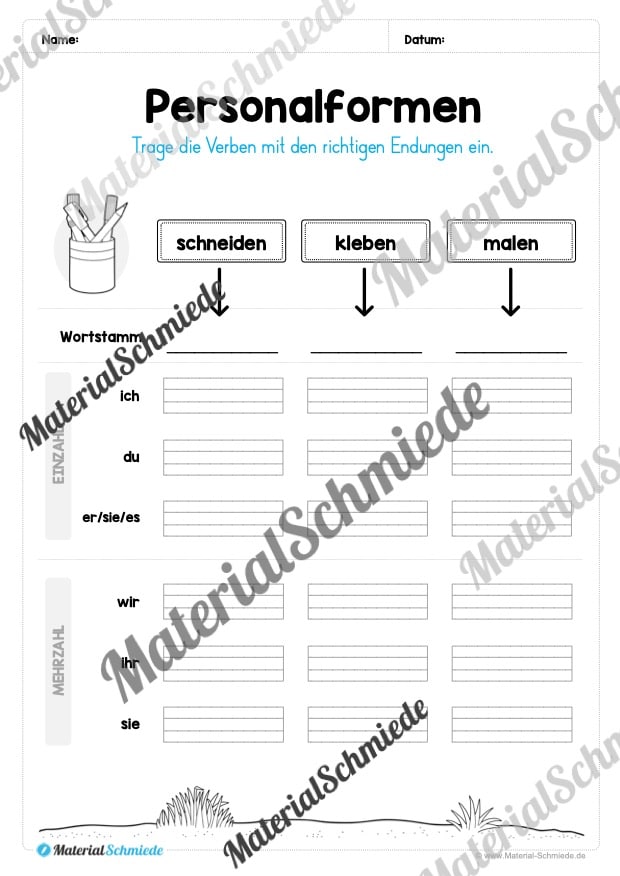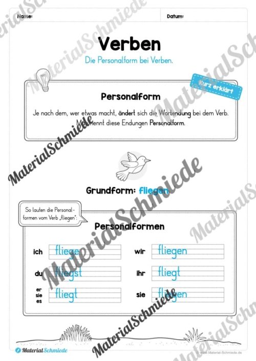 - Verben kennenlernen (Grundform, Wortstamm, Personalform)