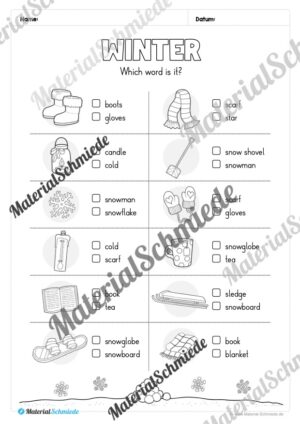 - Richtige Begriffe rund um den Winter passend zum Bild ankreuzen