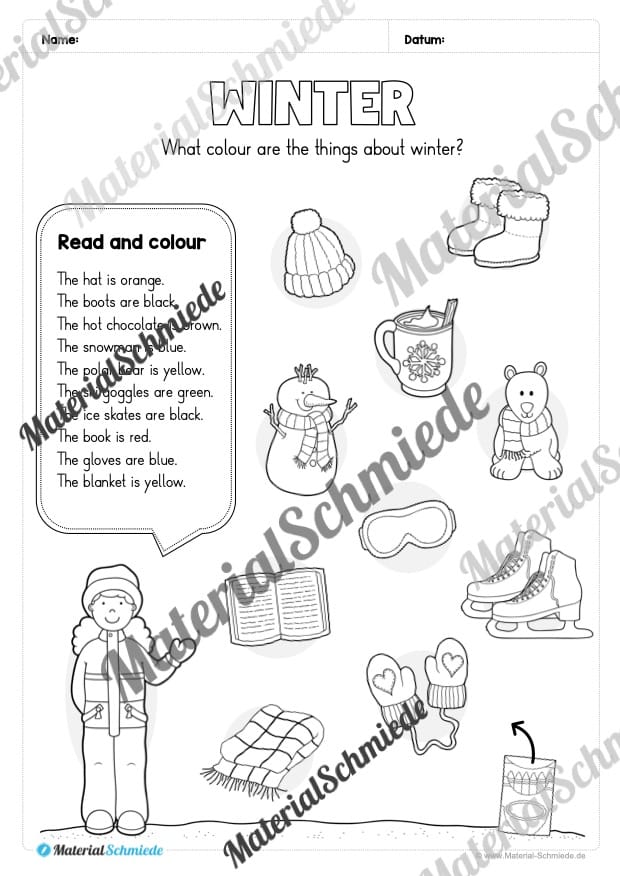 - Bilder zum Winter farblich nach Vorgabe ausmalen