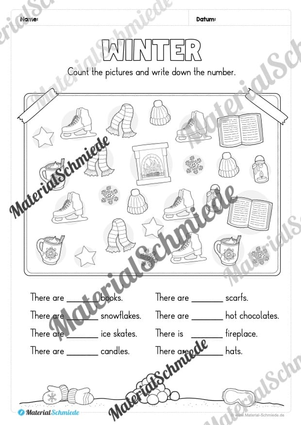 Folgende Aufgaben und Übungen sind u.a. in dem Materialpaket zum Winter enthalten: