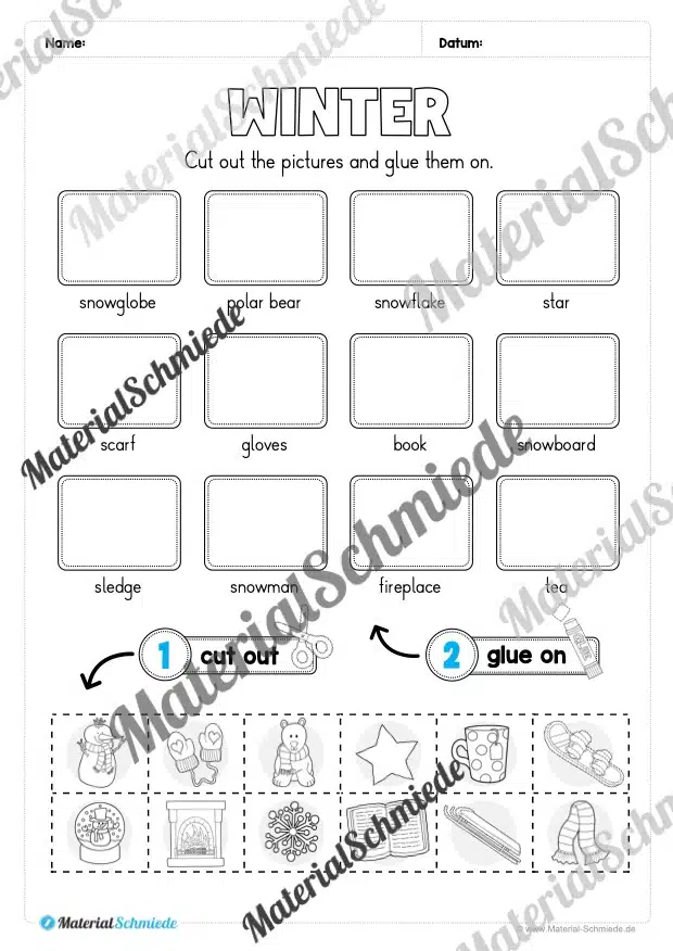 - Begriffe rund um den Winter sollen übersetzt, zugeordnet und verbunden werden