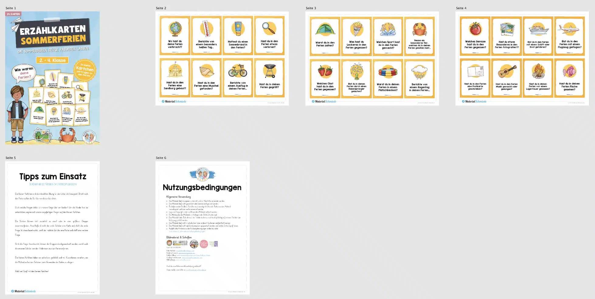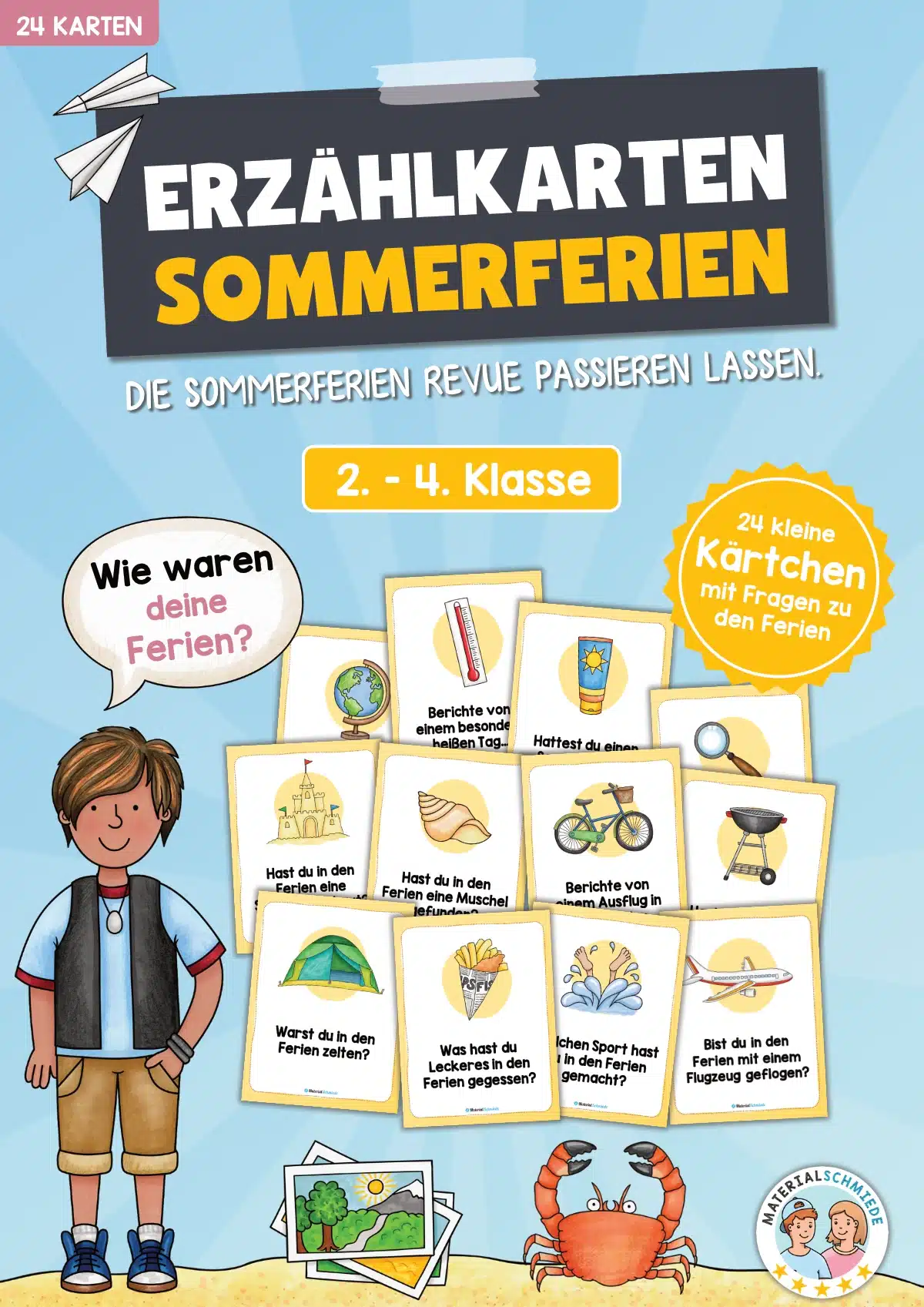 Die 24 Erzählkarten zu den Sommerferien sind als interaktive Übung für den Unterricht konzipiert. Direkt nach den Ferien sollen die Schüler von diesen berichten.