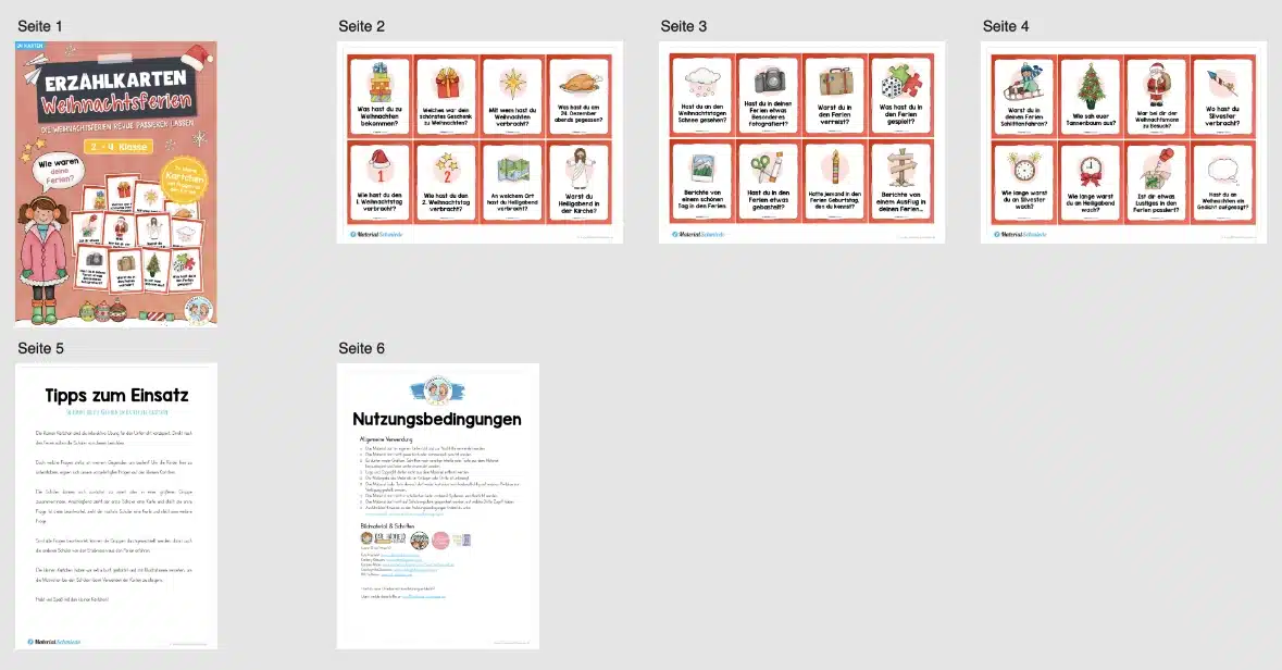 Die 24 Erzählkarten zu den Weihnachtsferien sind als interaktive Übung für den Unterricht konzipiert. Direkt nach den Ferien sollen die Schüler von diesen berichten.
