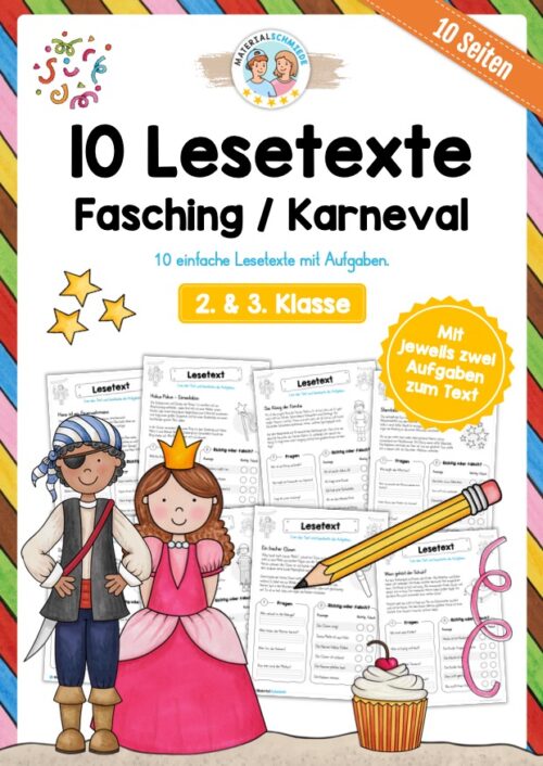 Dieses Materialpaket enthält insgesamt 10 verschiedene Lesetexte zum Thema Fasching / Karneval inkl. zweier Aufgaben.